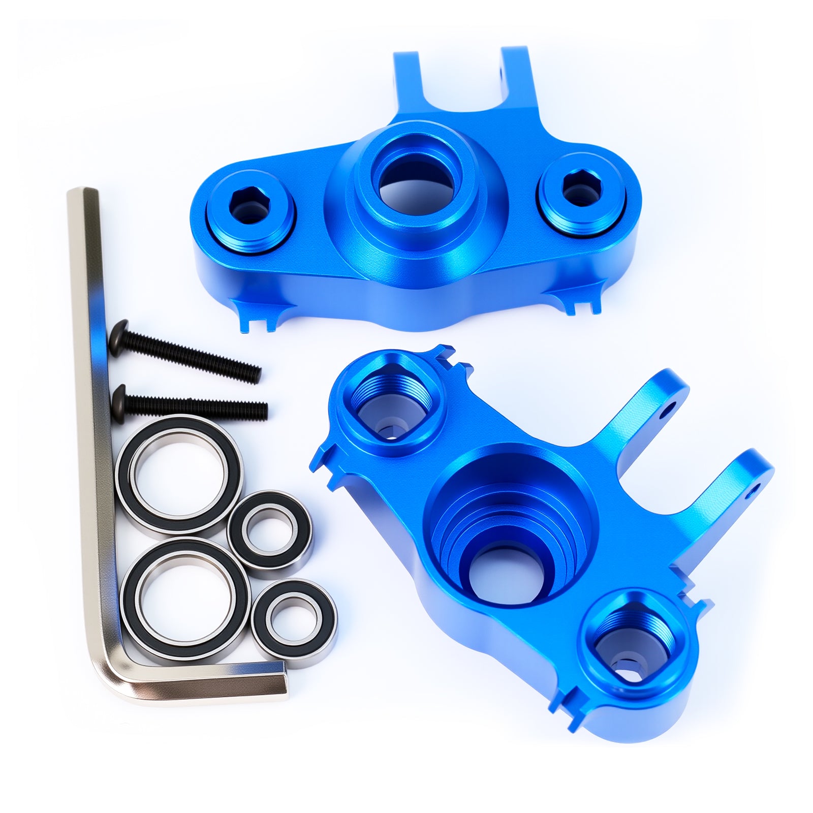2Pcs Aluminum Steering Block Knuckle Arm with Rubber Shielded Bearing Accessories for 1/10 Old E-Revo Erevo Summit E-MAXX T-MAXX3.3 Slayer Pro 4X4 5334R, Blue